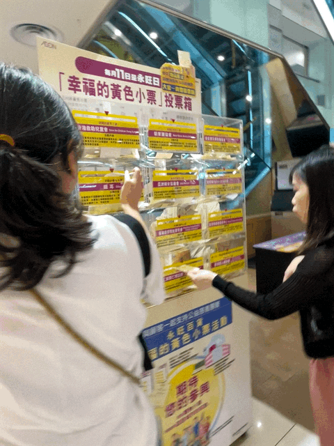 本中心榮幸獲選為AEON Stores(永旺香港)舉辦的第二十六屆「幸福的黃色小票」活動的受惠團體之一。從現在起至7月的每個月11日,只需在AEON購物,將您的付款收據(黃色小票)投放進標明「龍耳Silence」的投票箱內,AEON將根據收集的小票金額的1%捐贈物資,以支持聾人及弱聽人士的服務。
